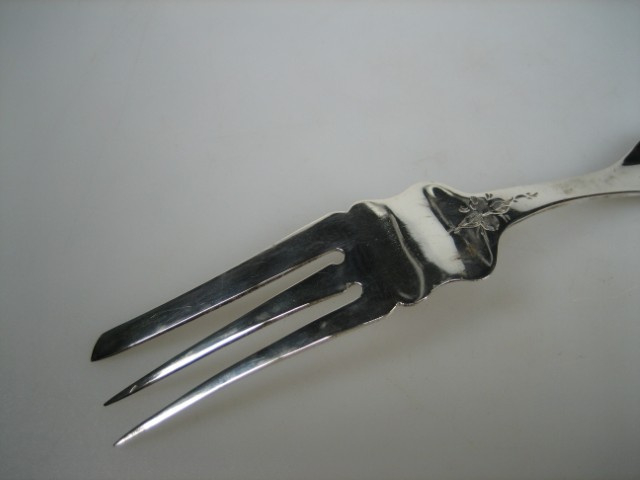 Antiek zilveren vleesvorkje / zuurvorkje biedermeier ca. 1856/1867