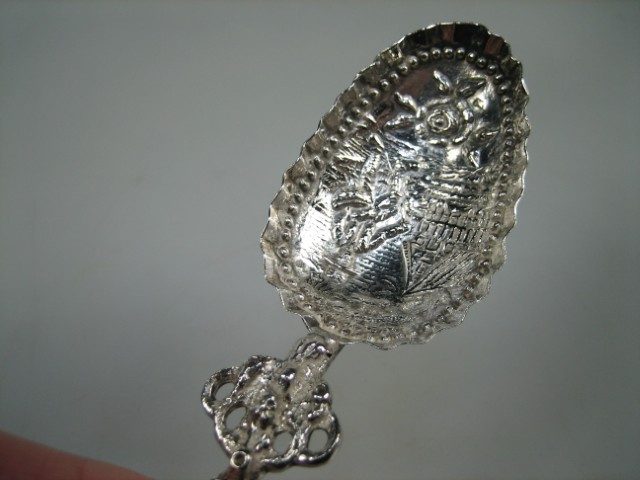 Deze zilveren geboortelepel heeft een bewerkte gekartelde bakrand wat het ook exclusief maakt.