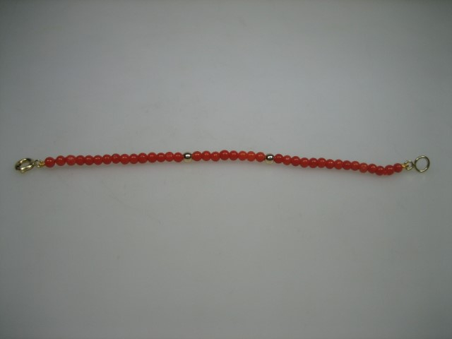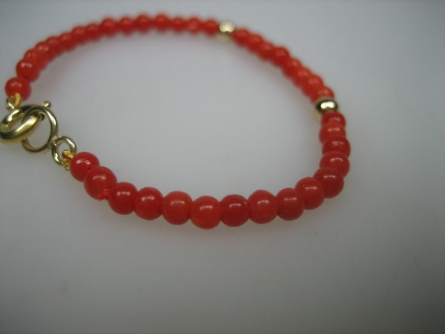 Antieke bloedkoralen baby armbandje met 14 karaat gouden Veerring sluiting uit ca.1880