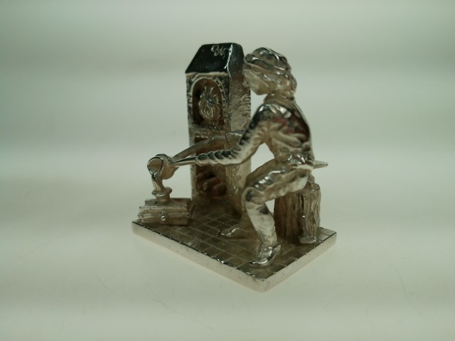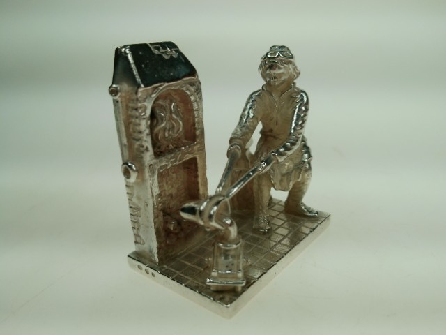 Zilver miniatuur hoefsmid aan het werk in zijn atelier Niekerk ca.1980
