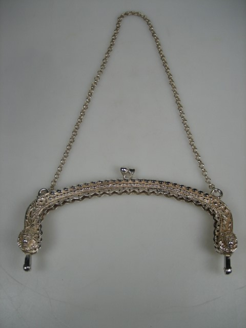 Deze tasbeugel is prachtig bewerkt met allerlei bloemen en vruchten , druiven met blad, daarbij is het voorzien van een ketting met langwerpige€ 289,00 € 169,00